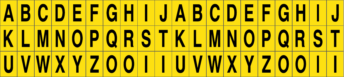 CONF.5 PZ FOGLIO.ADES.PVC.200X45 MM N.60 ETIC.10X15 MM G/N LETTERE DALLA A ALLA Z