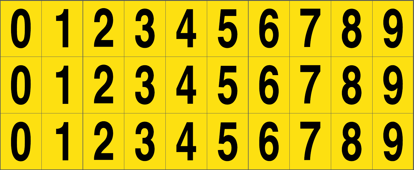 CONF.5 PZ FOGLIO.ADES.PVC.250X100 MM N.30 ETIC.25X33 MM G/N NUMERI DA 0 A 9