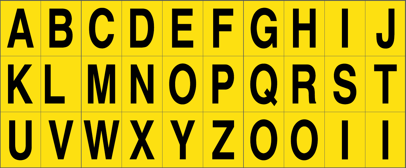 CONF.5 PZ FOGLIO.ADES.PVC.250X100 MM N.30 ETIC.25X33 MM G/N DA LETTERA A ALLA Z