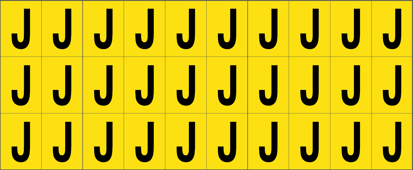 CONF.5 PZ FOGLIO.ADES.PVC.250X100 MM N.30 ETIC.25X33 MM G/N LETTERA J