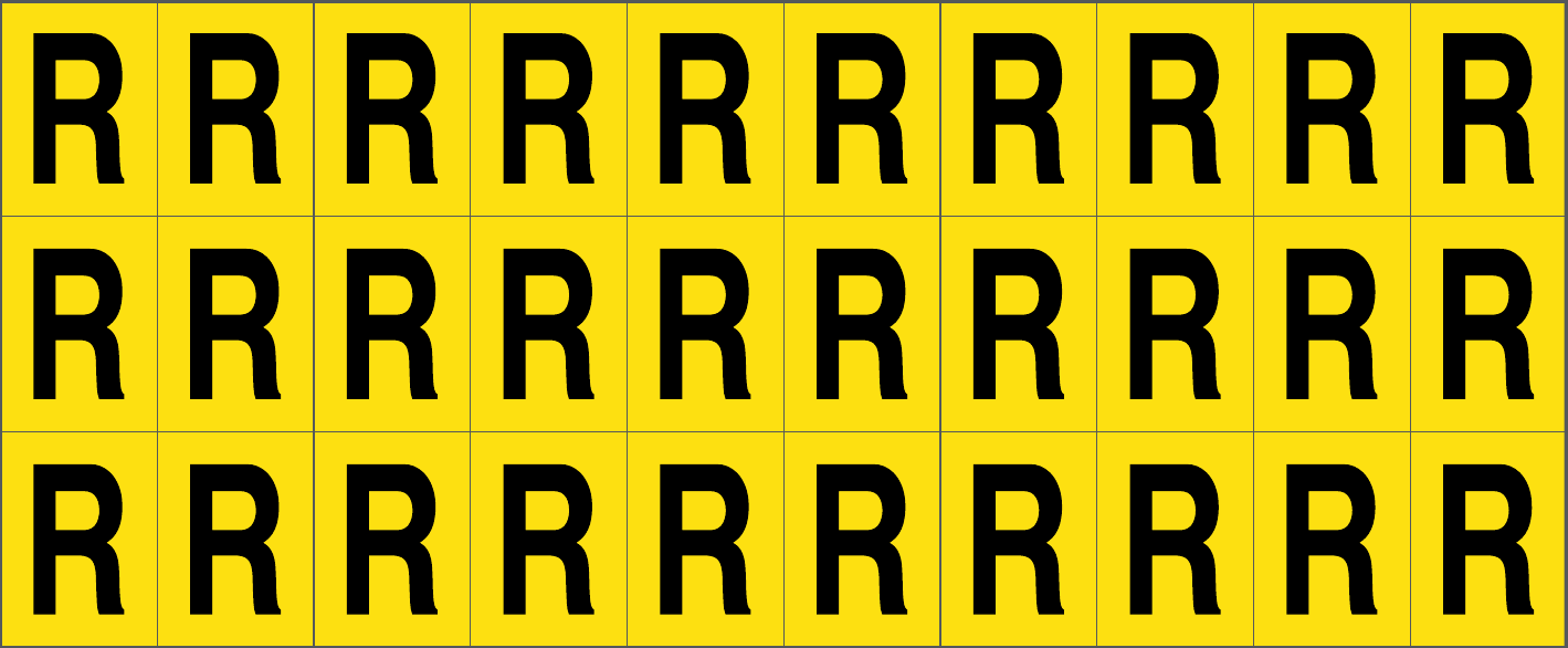 CONF.5 PZ FOGLIO.ADES.PVC.250X100 MM N.30 ETIC.25X33 MM G/N LETTERA R