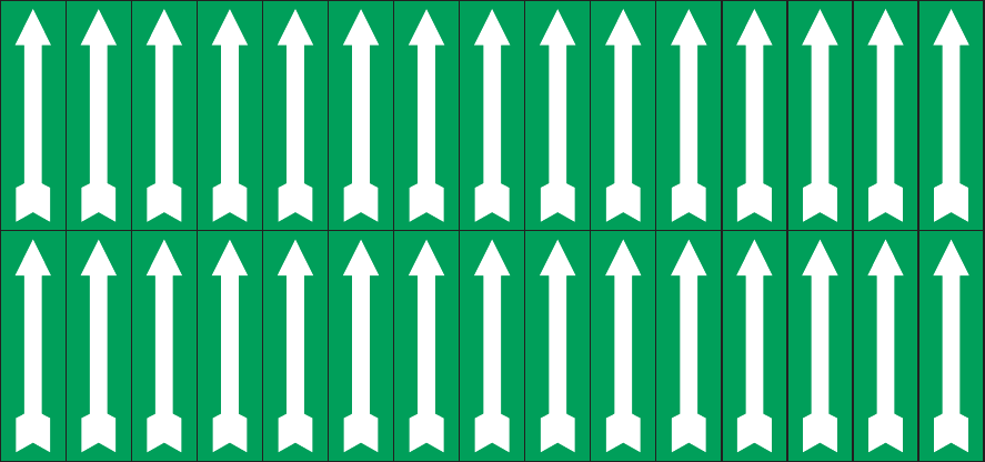 CONF.5 PZ FOGLIO ADES.PVC 150X70 MM N.30 ETICH.10X35 MM FONDO VERDE FRECCIA BIANCA
