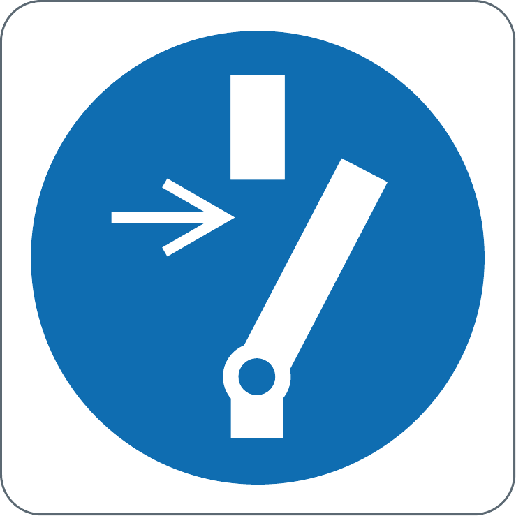 ADESIVO PVC 60X60 MM SIMBOLO OBBLIGO DISCONNETTERE MACCHINARIO PRIMA DI DI EFFETTUARE MANUTENZIONI O RIPARAZIONI