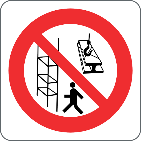 ADESIVO PVC LATO 125 MM SIMBOLO VIETATO PASSARE SOTTO CARICHI SOSPESI