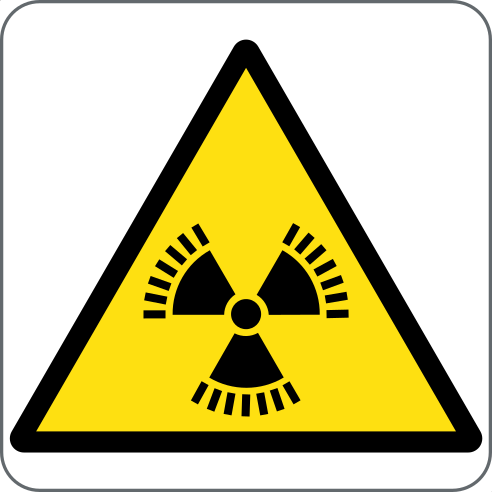 ADESIVO PVC LATO 125 MM SIMBOLO PERICOLO IRRADIAZIONE