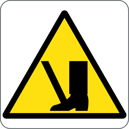 ADESIVO PVC LATO 125 MM SIMBOLO PERICOLO SCHIACCIAMENTO PIEDI