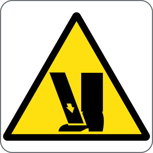 ADESIVO PVC LATO 60 MM SIMBOLO PERICOLO SCHIACCIAMENTO PIEDE