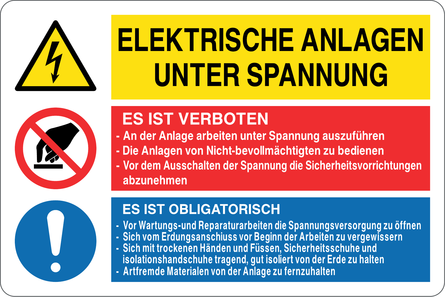 CARTELLO ALLUMINIO 300X200 MM ELEKTRISCHE ANLAGEN UNTER SPANNUNG