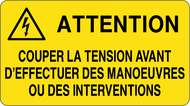 ADESIVO PVC 125X70 MM ATTENTION COUPER LA TENSION AVANT D'EFFECTUERDES MANOEUVRES OU DES INTERVENTIONS