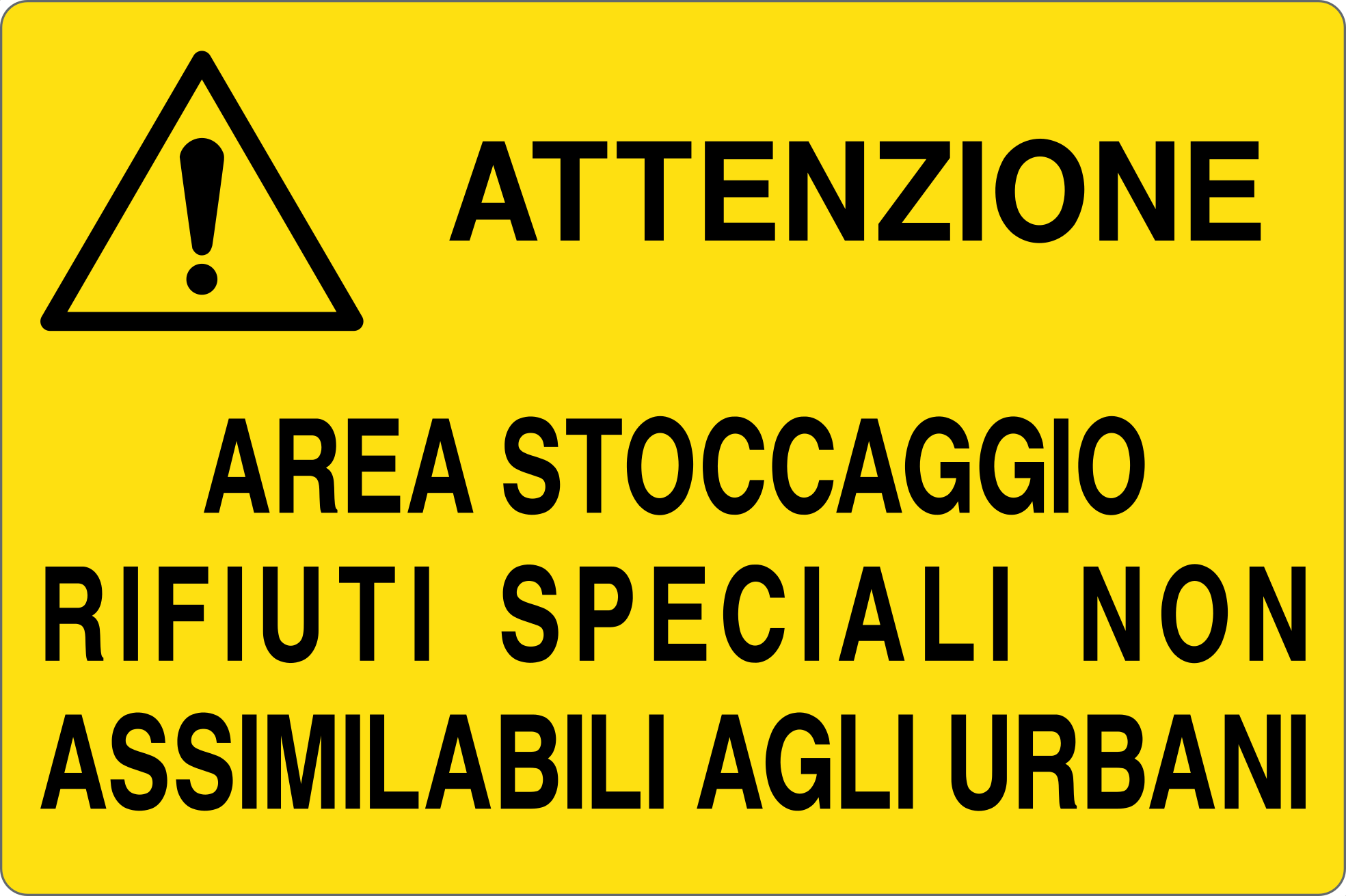 CARTELLO ALLUMINIO 500X333 MM AREA STOCCAGGIO RIFIUTI SPECIALI NON ASSIMILABILIAGLI URBANI