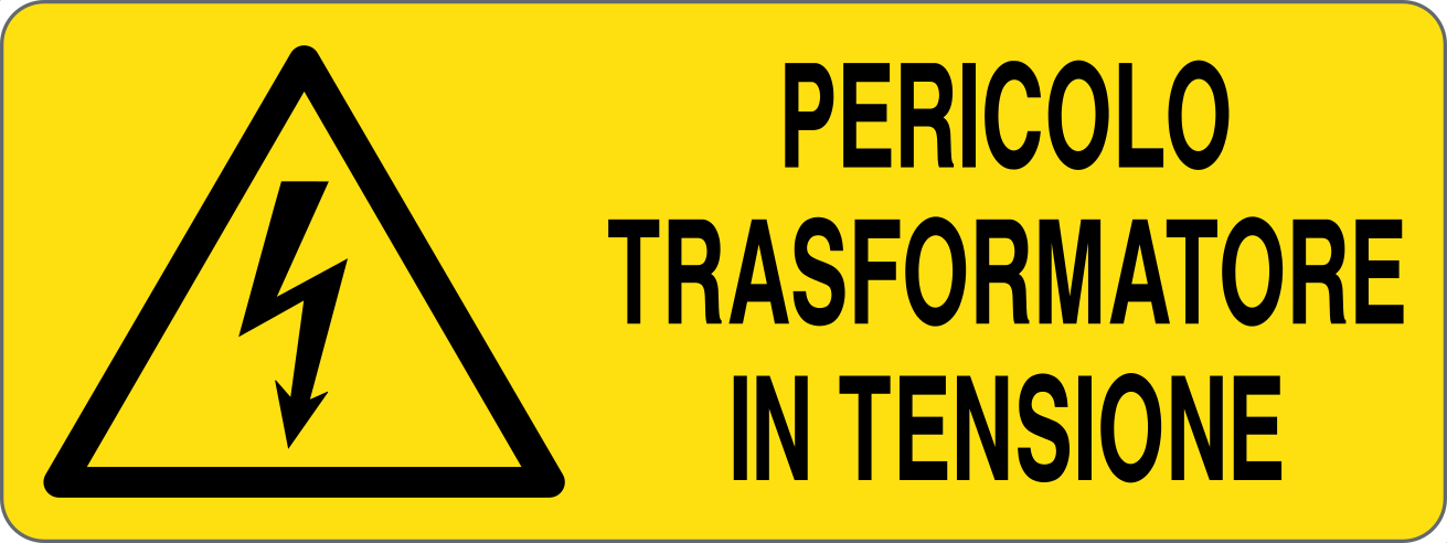 CARTELLO ALLUMINIO 333X125 MM PERICOLO TRASFORMATORE IN TENSIONE