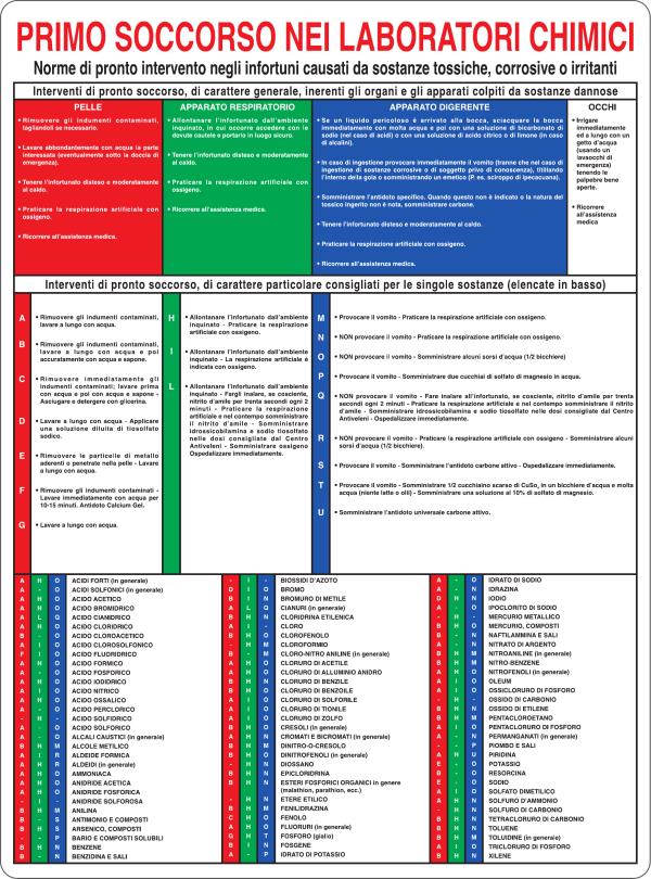 CARTELLO ALLUMINIO 370X500 MM PRIMO SOCCORSO NEI LABORATORI CHIMICI