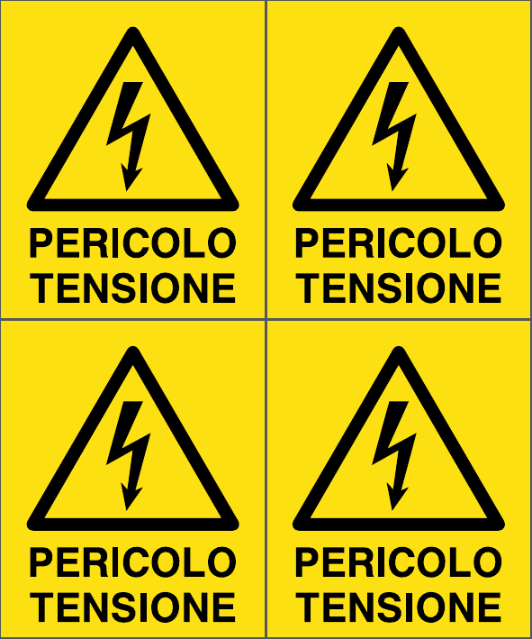 ADESIVO PVC 100X125 MM N.4 ETICHETTE MM 50X60 PERICOLO TENSIONE