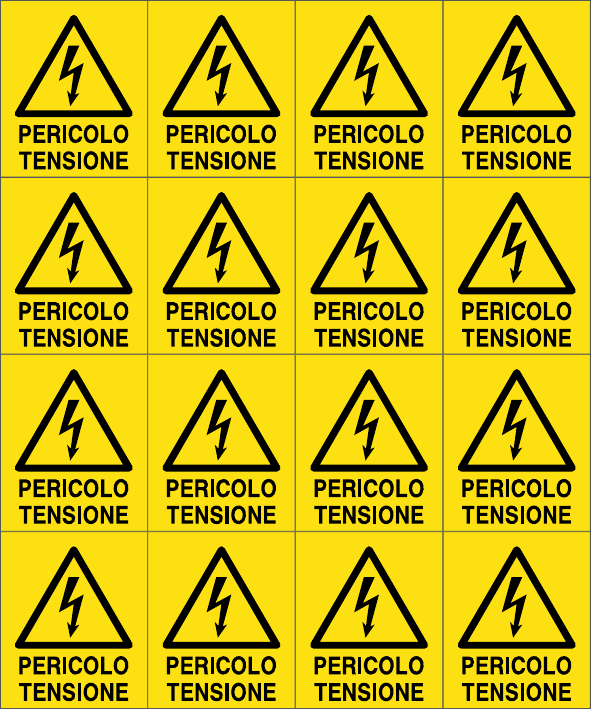ADESIVO PVC 100X125 16 ETICHETTE MM 25X30 PERICOLO TENSIONE