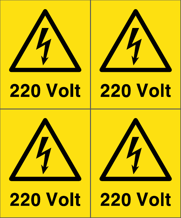 ADESIVO PVC 100X125 MM N. 4 ETICHETTE MM 50X60 "220 VOLT"