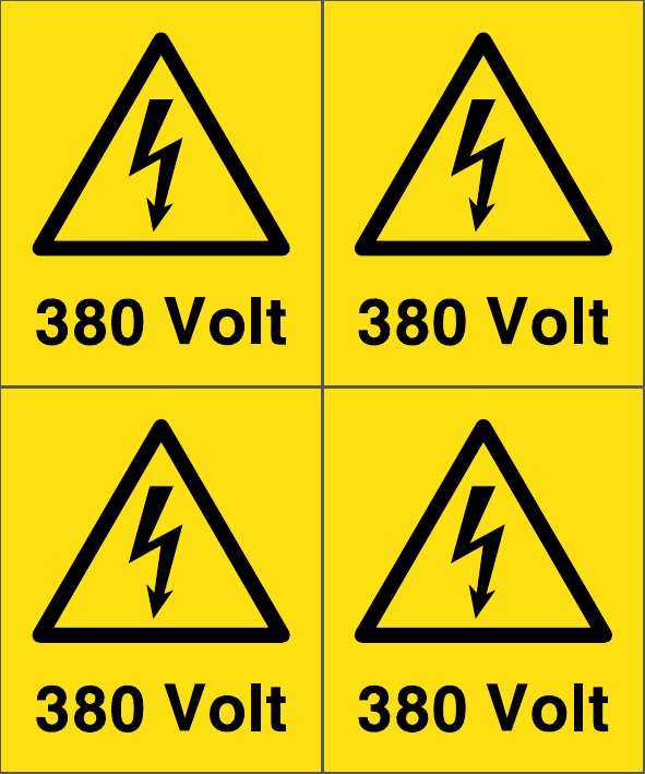 ADESIVO PVC MM 100X125 DA N.4 ETICHETTE DA MM 50X60 SCRITTA 380 VOLT