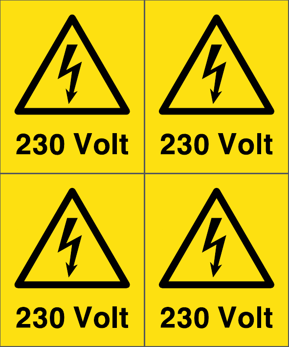 FOGLIO ADESIVO 125X100 MM N.4 ETICHETTE "230 VOLT"