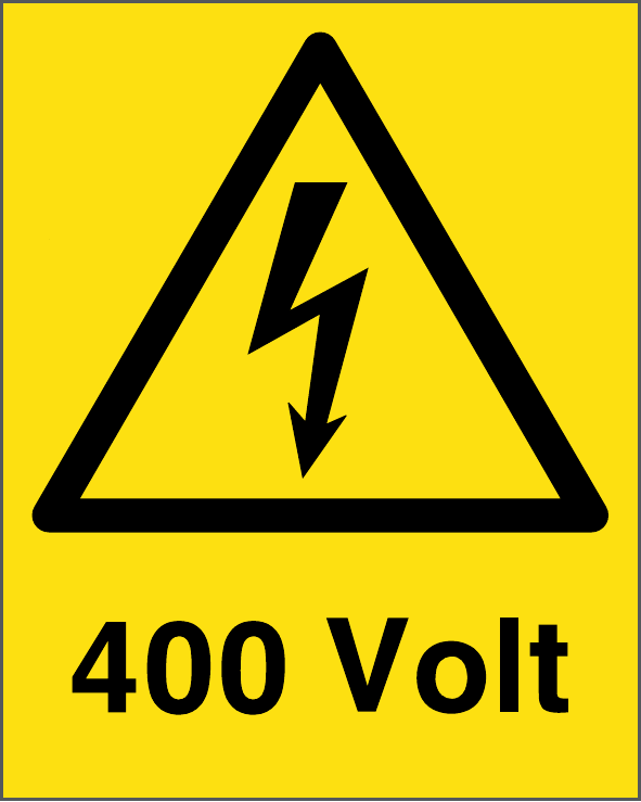 ADESIVO PVC MM 100X125 SIMBOLO ALTA TENSIONE E DICITURA: 400 VOLT