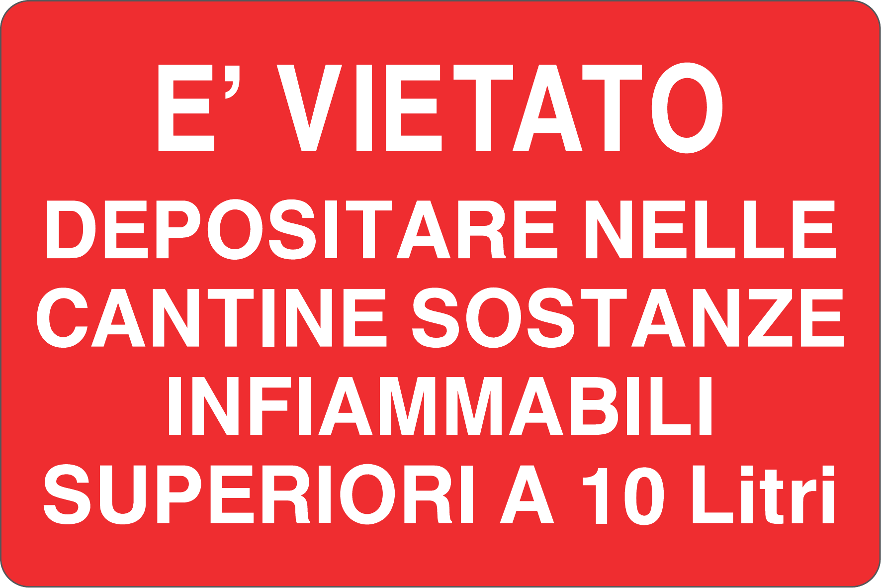 CARTELLO ALLUMINIO 300X200 MM E' VIETATO DEPOSITARE NELLE CANTINE SOSTANZEINFIAMMABILI SUPERIORI A 10 L