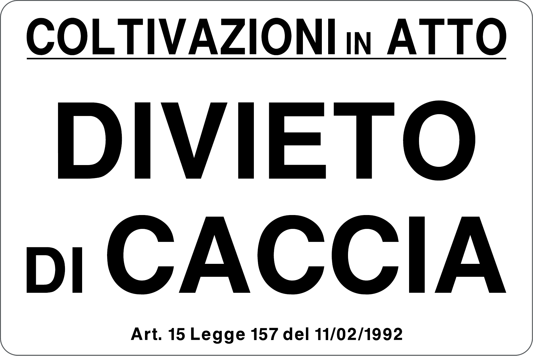 CARTELLO ALLUMINIO 300X200 MM COLTIVAZIONI IN ATTO DIVIETO DI CACCIA