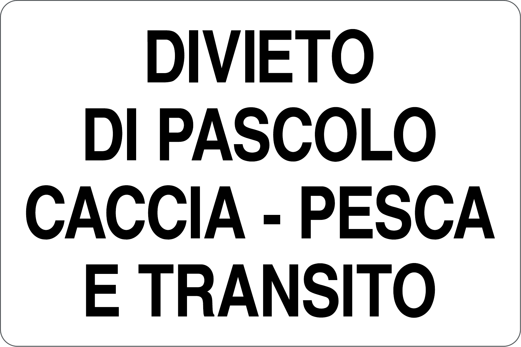 CARTELLO ALLUMINIO 300X200 MM DIVIETO DI PASCOLO CACCIA PESCA E TRANSITO