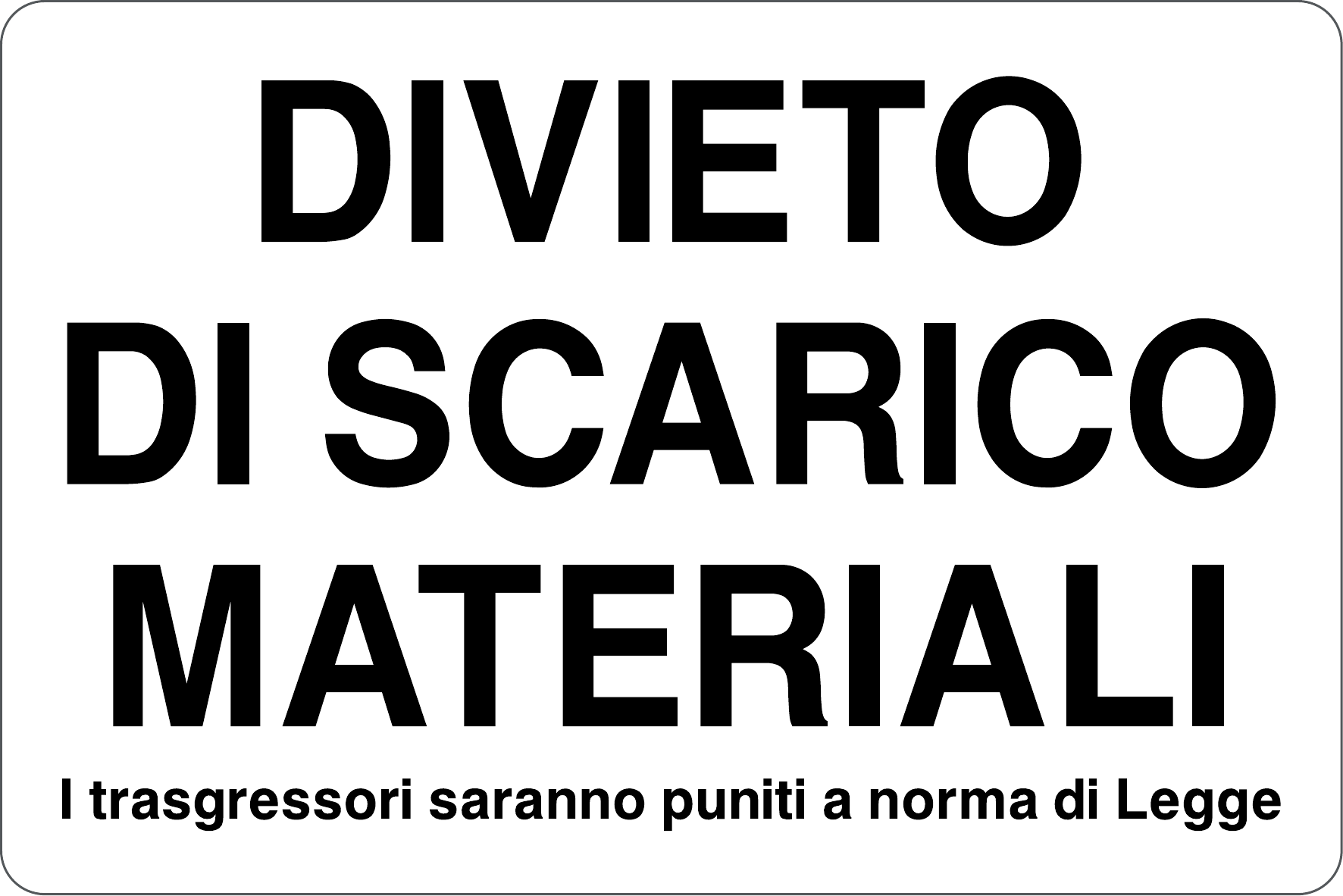 CARTELLO ALLUMINIO 300X200 MM DIVIETO SCARICO MATERIALI I TRASGRESSORI