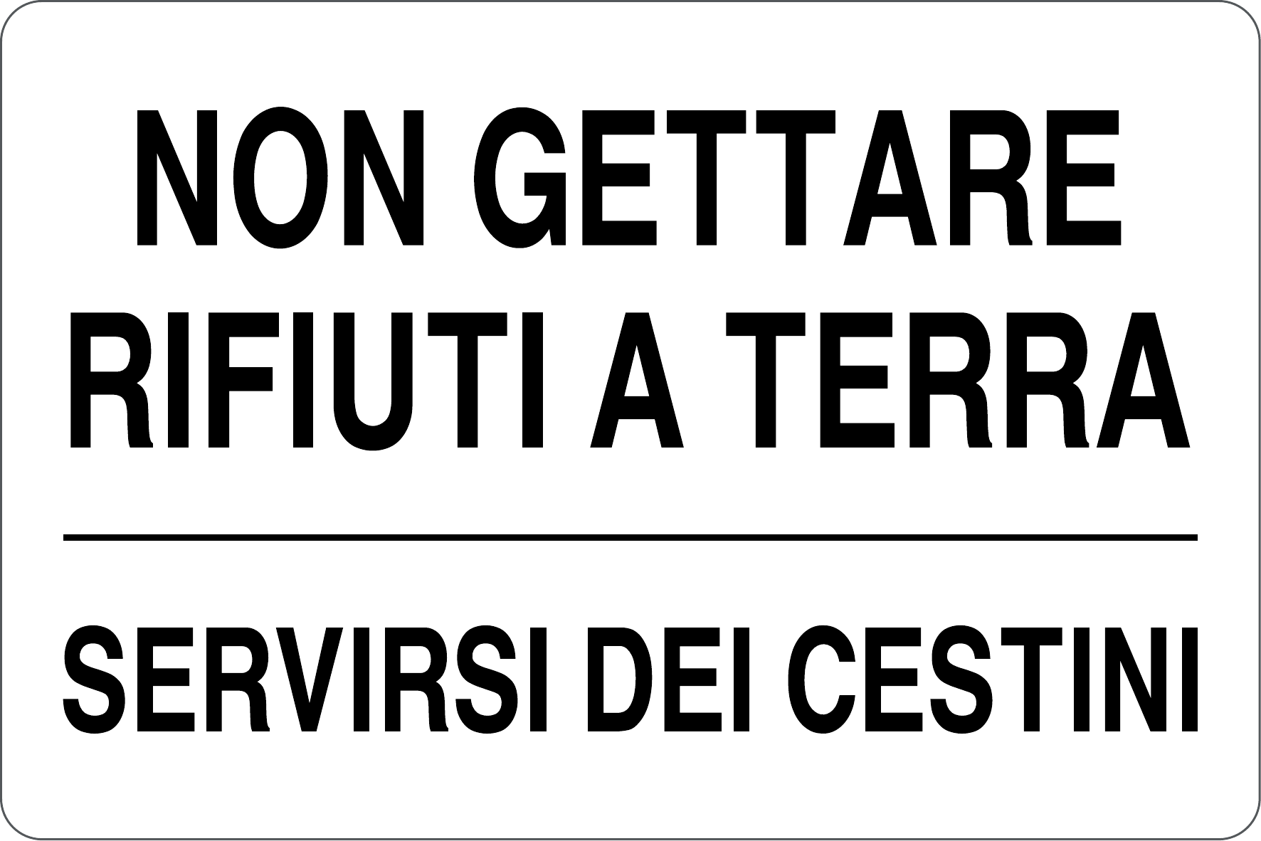 CARTELLO ALLUMINIO 300X200 MM NON GETTARE RIFIUTI PER TERRA SERVITEVI DEICONTENITORI