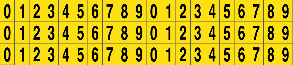 CONF.5 PZ FOGLIO.ADES.PVC.200X45 MM N.60 ETIC.10X15 MM G/N NUMERI DA 0 A 9