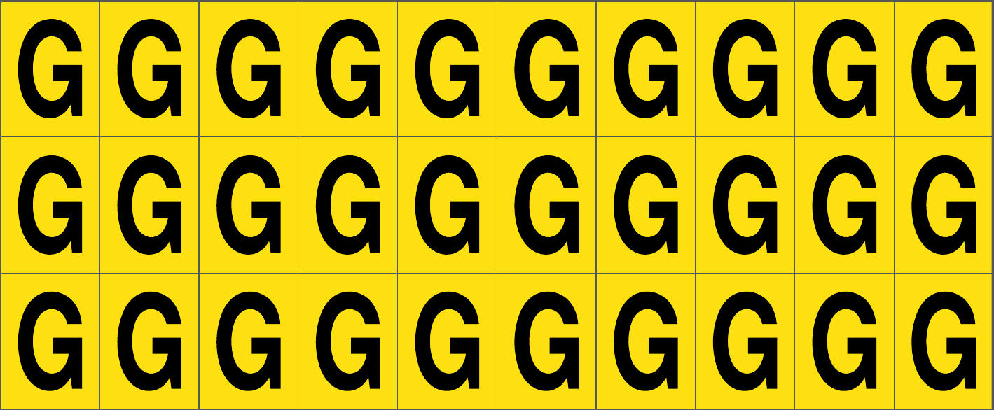 CONF.5 PZ FOGLIO.ADES.PVC.250X100 MM N.30 ETIC.25X33 MM G/N LETTERA G