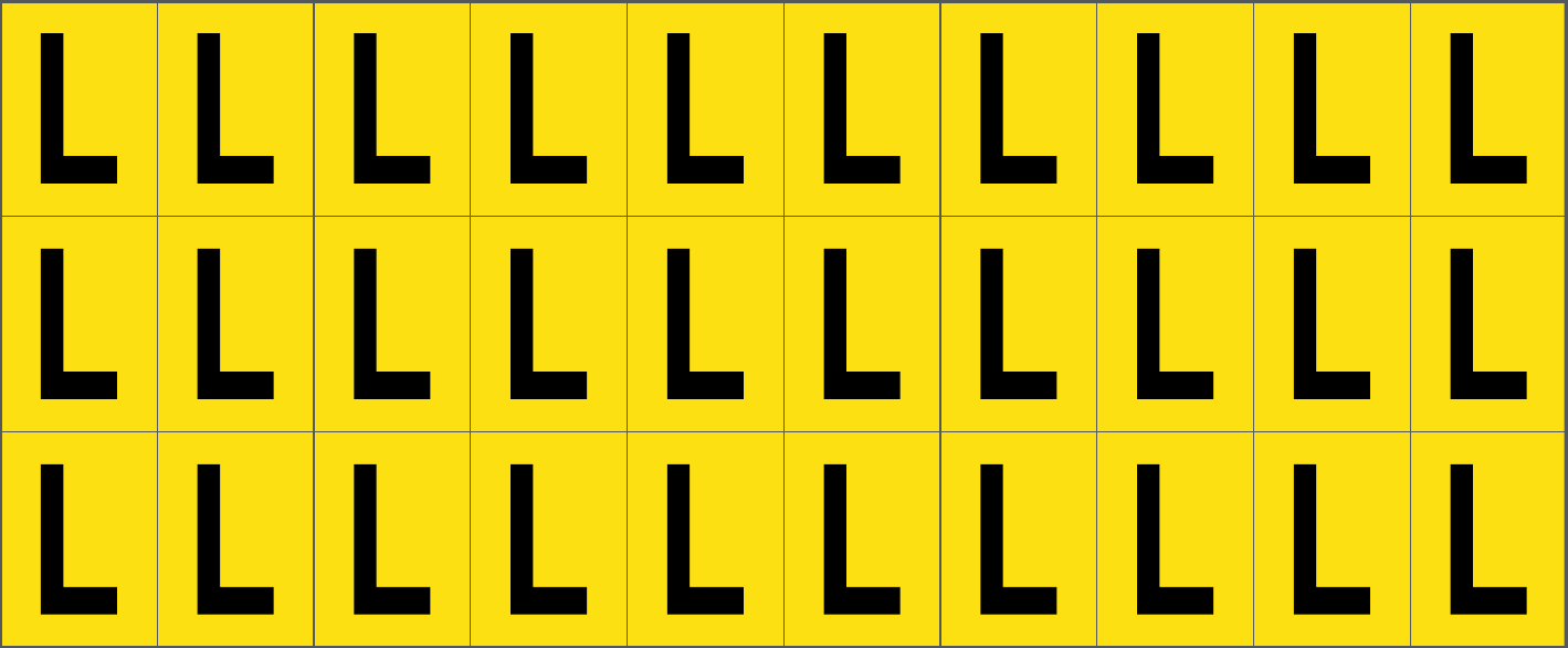 CONF.5 PZ FOGLIO.ADES.PVC.250X100 MM N.30 ETIC.25X33 MM G/N LETTERA L