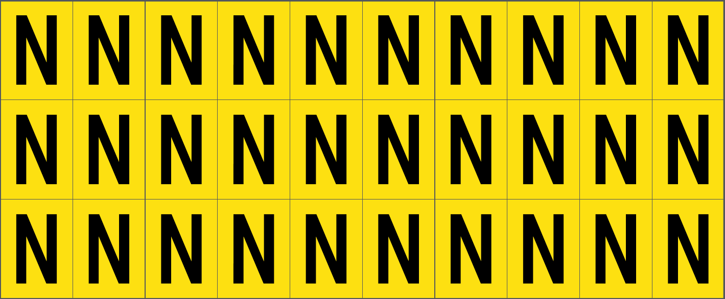 CONF.5 PZ FOGLIO.ADES.PVC.250X100 MM N.30 ETIC.25X33 MM G/N LETTERA N