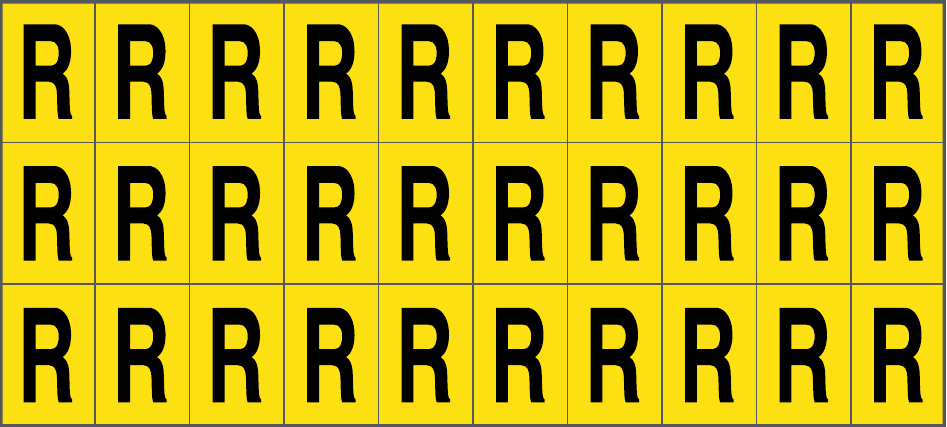 CONF.5 PZ FOGLIO.ADES.PVC.160X72 MM N.30 ETIC.16X24 MM G/N LETTERA R