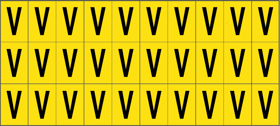 CONF.5 PZ FOGLIO.ADES.PVC.160X72 MM N.30 ETIC.16X24 MM G/N LETTERA V