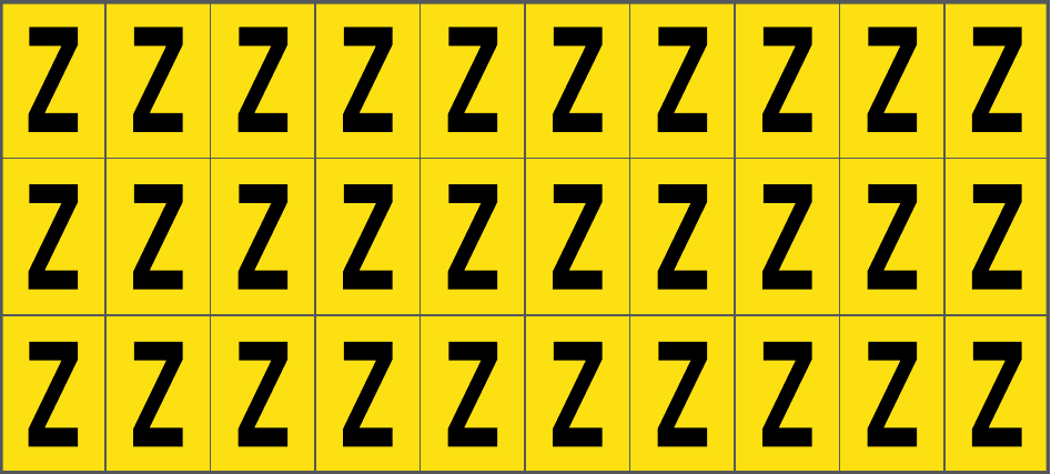 CONF.5 PZ FOGLIO.ADES.PVC.160X72 MM N.30 ETIC.16X24 MM G/N LETTERA Z