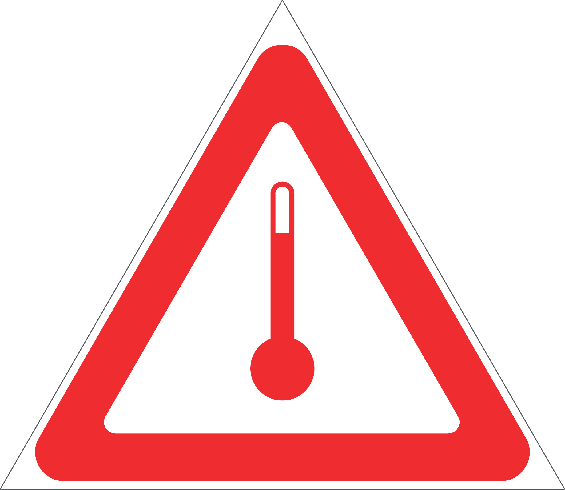 ADESIVO PVC LATO 310 MM TRIANGOLO CON SIMBOLO TERMOMETRO ROSSO