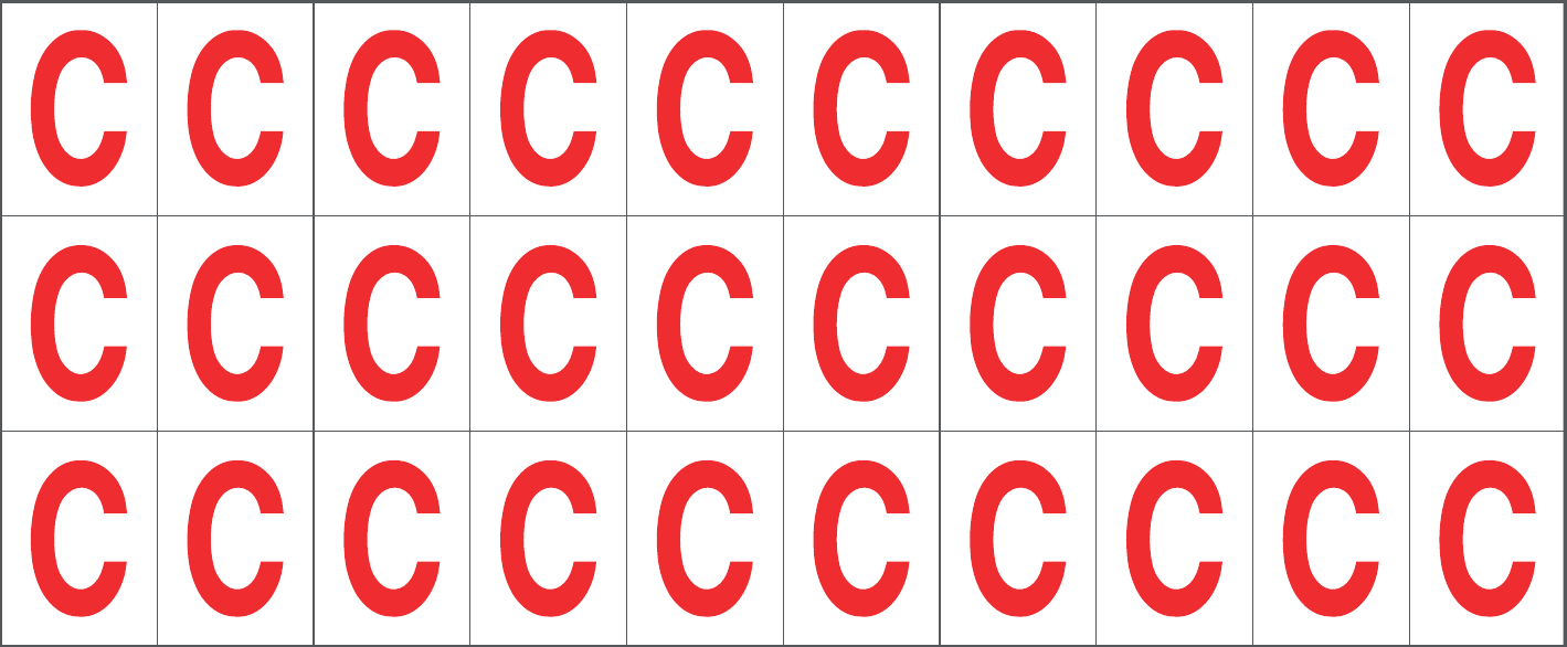 CONF.5 PZ FOGLIO.ADES.PVC.250X100 MM N.30 ETIC.25X33 MM B/R LETTERA C