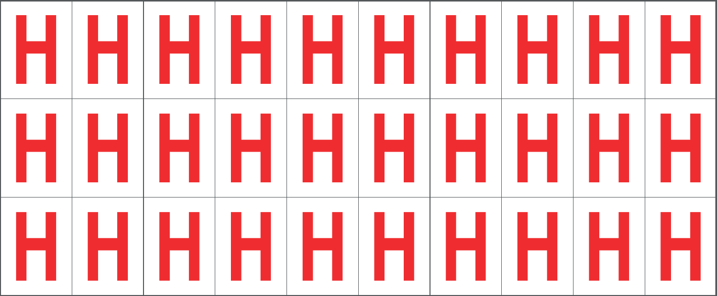 CONF.5 PZ FOGLIO.ADES.PVC.250X100 MM N.30 ETIC.25X33 MM B/R LETTERA H