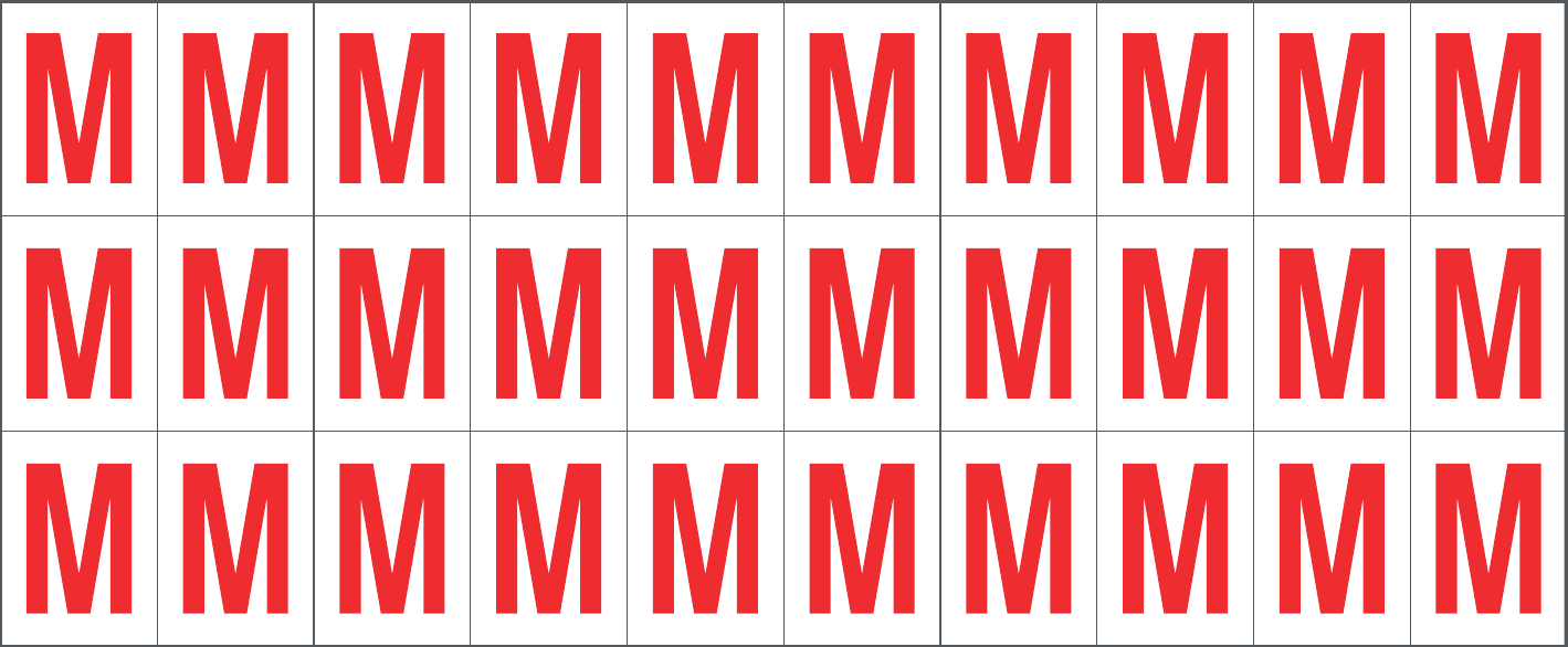 CONF.5 PZ FOGLIO.ADES.PVC.250X100 MM N.30 ETIC.25X33 MM B/R LETTERA M