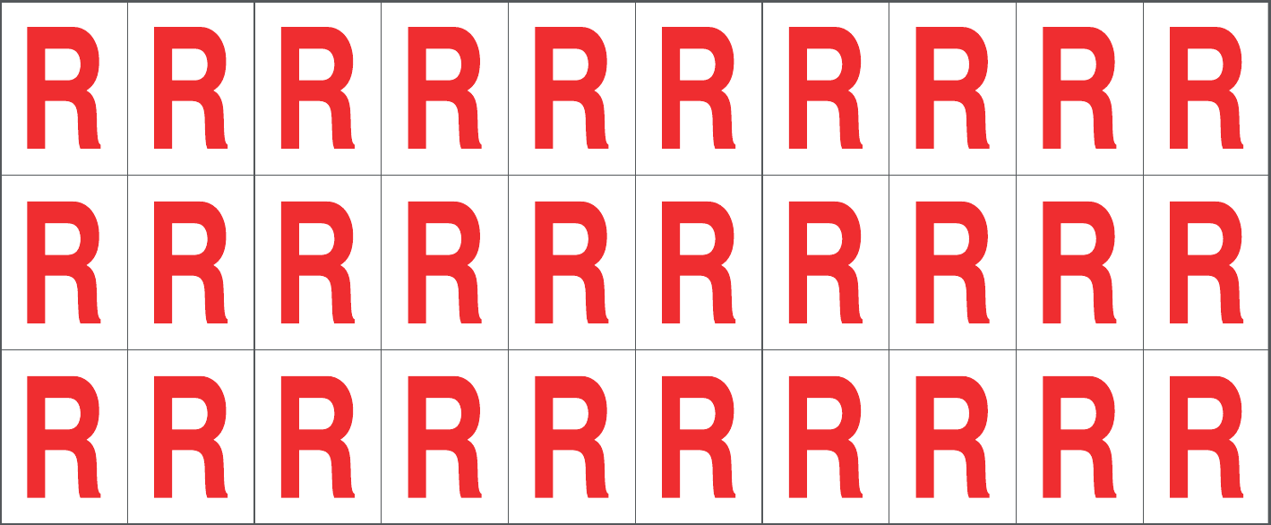 CONF.5 PZ FOGLIO.ADES.PVC.250X100 MM N.30 ETIC.25X33 MM B/R LETTERA R