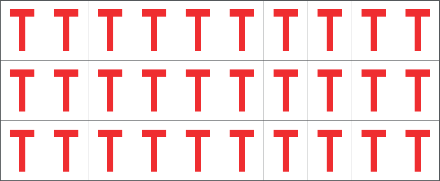 CONF.5 PZ FOGLIO.ADES.PVC.250X100 MM N.30 ETIC.25X33 MM B/R LETTERA T