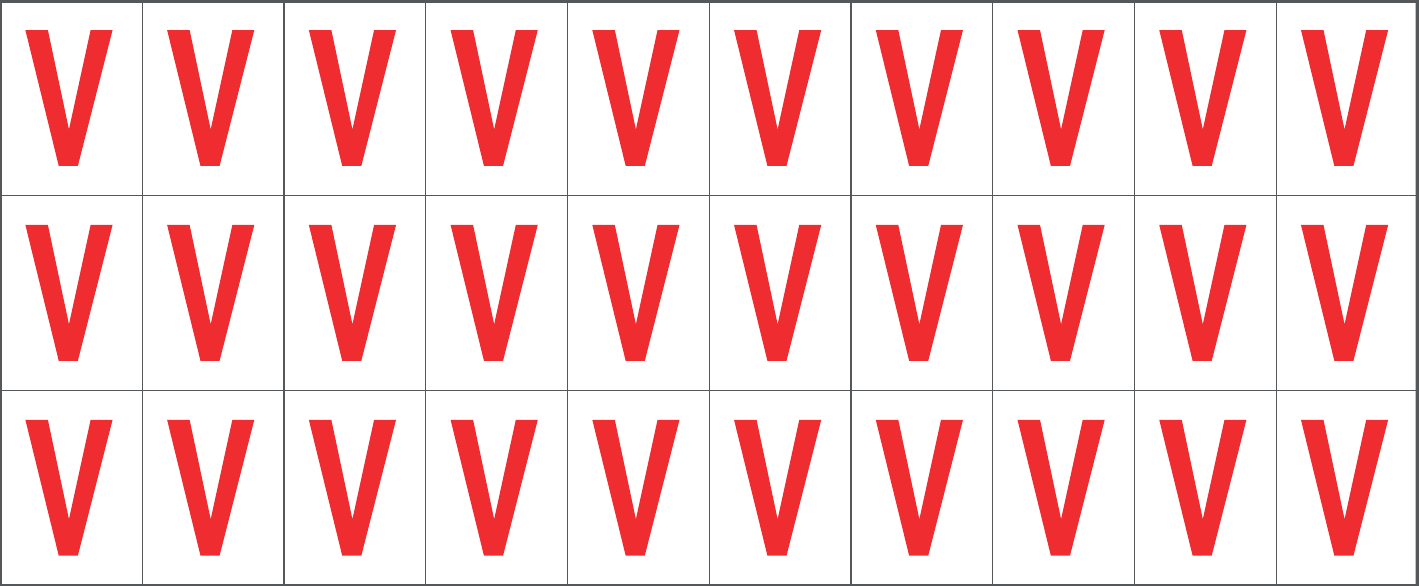 CONF.5 PZ FOGLIO.ADES.PVC.250X100 MM N.30 ETIC.25X33 MM B/R LETTERA V