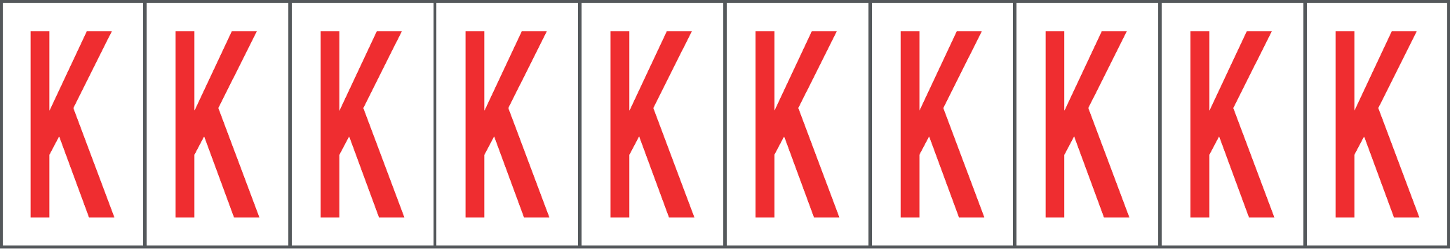 CONF.5 PZ FOGLIO.ADES.PVC.350X60 MM N.10 ETIC.35X60 MM B/R LETTERA K
