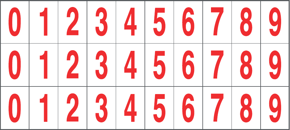 CONF.5 PZ FOGLIO.ADES.PVC.160X72 MM N.30 ETIC.16X24 MM MM B/R DAL NUMERO 0 AL NUMERO 9