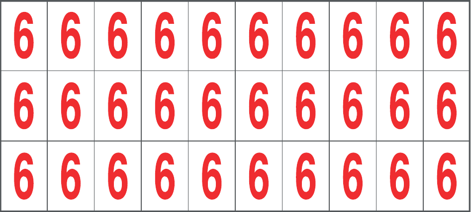 CONF.5 PZ FOGLIO.ADES.PVC.160X72 MM N.30 ETIC.16X24 MM B/R NUMERI 6/9