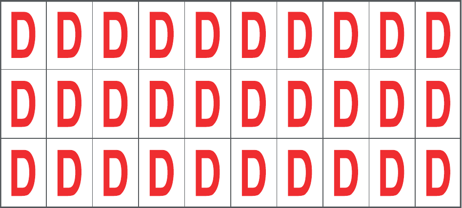 CONF.5 PZ FOGLIO.ADES.PVC.160X72 MM N.30 ETIC.16X24 MM B/R LETTERA D