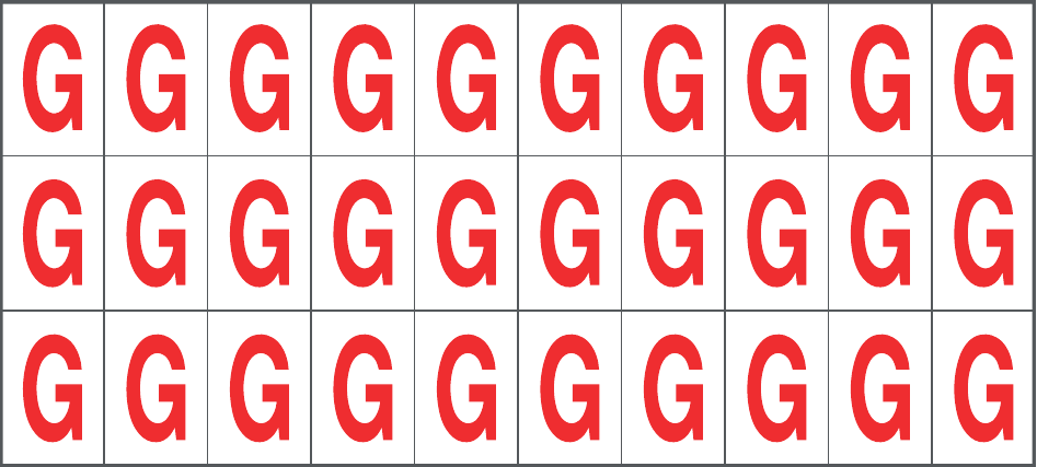 CONF.5 PZ FOGLIO.ADES.PVC.160X72 MM N.30 ETIC.16X24 MM B/R LETTERA G