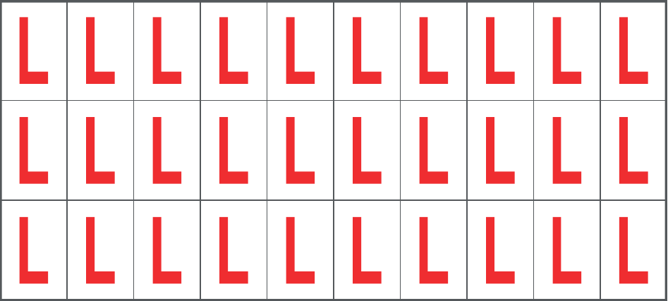 CONF.5 PZ FOGLIO.ADES.PVC.160X72 MM N.30 ETIC.16X24 MM B/R LETTERA L