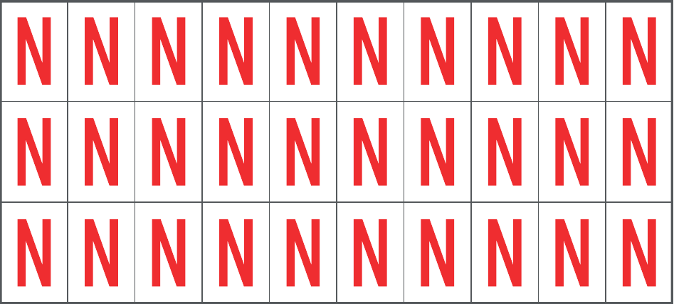 CONF.5 PZ FOGLIO.ADES.PVC.160X72 MM N.30 ETIC.16X24 MM B/R LETTERA N