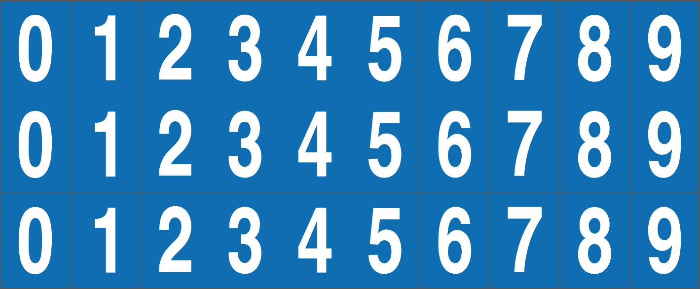 FOGLIO ADESIVO 240X100 MM N.30 ETICHETTE 24X33 MM FONDO BLU NUMERO BIANCO