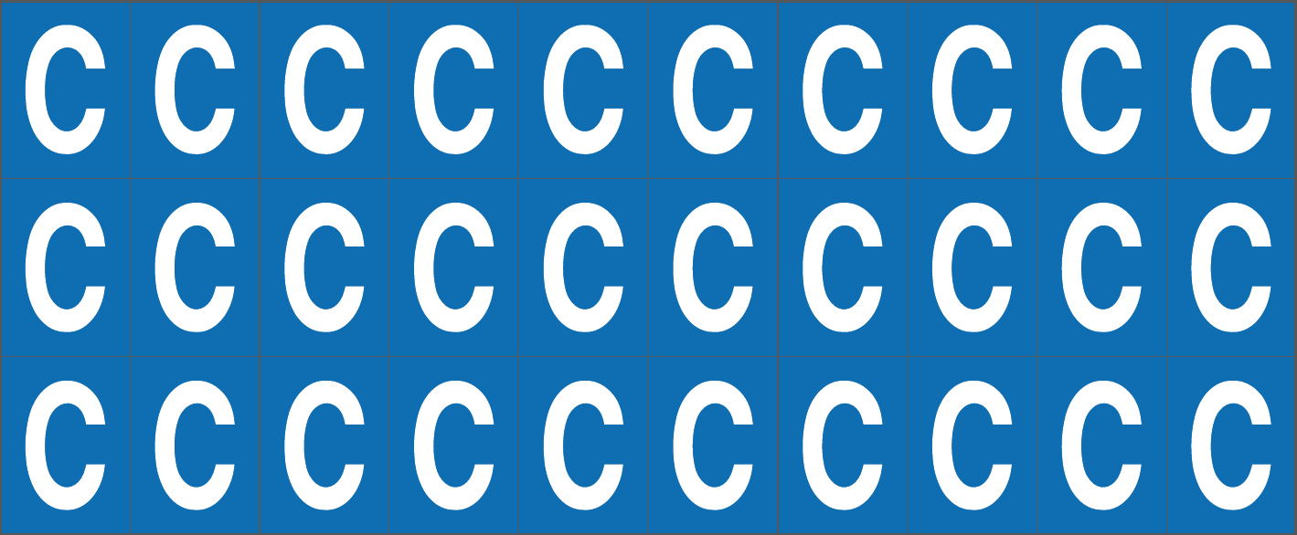 CONF.5 PZ FOGLIO.ADES.PVC.250X100 MM N.30 ETIC.25X33 MM B/B LETTERA C